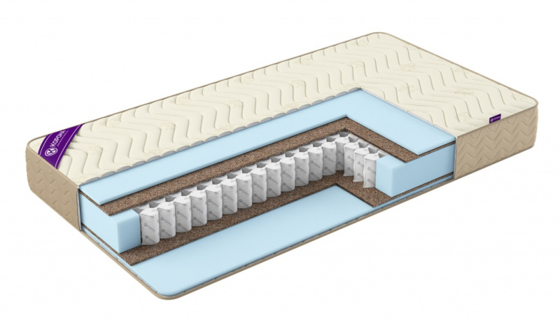- Кокосовая койра: жесткий, прочный и гипоаллергенный материал, который не деформируется и обеспечивает хорошую вентиляцию.
