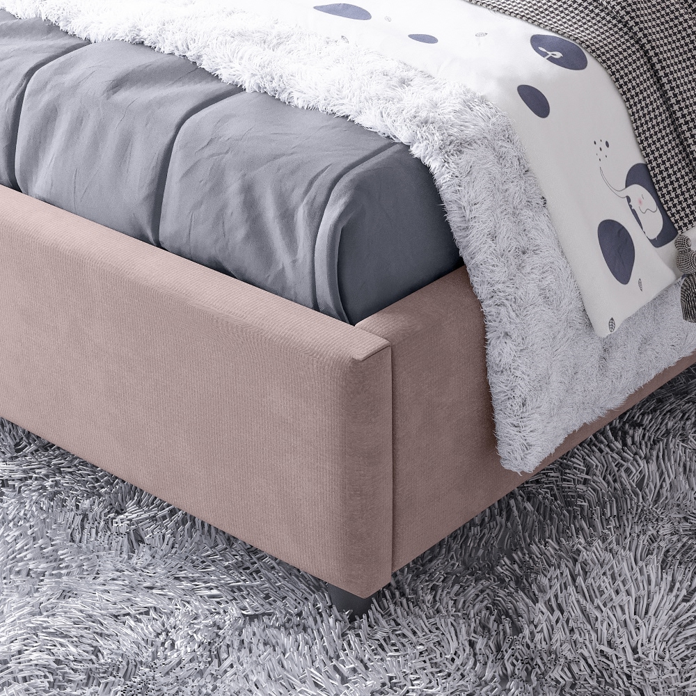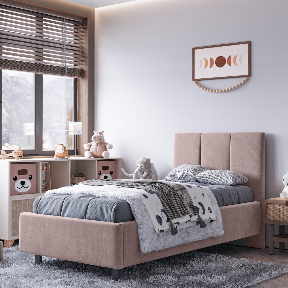 Односпальная кровать на высоких деревянных ножках в современном стиле выглядит гармонично и привлекательно. Благодаря компактным размерам она отлично подходит для комнаты подростка или молодежной спальни.