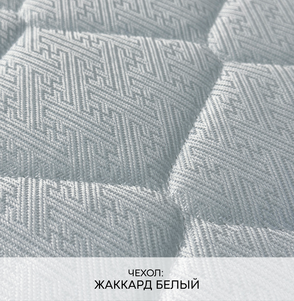 Жаккард Белый — это высококачественная ткань, которая является ключевым элементом комфорта любого матраса. Изготовленная из сочетания хлопка и полиэстера, она объединяет мягкость натурального волокна и прочность синтетической нити. Ткань обладает отличными эксплуатационными свойствами: Гипоаллергенность — безопасна для чувствительной кожи. Материал «дышит» — обеспечивает оптимальный микроклимат во время сна. Долговечность — сохраняет форму матраса и внешний вид при длительном использовании.