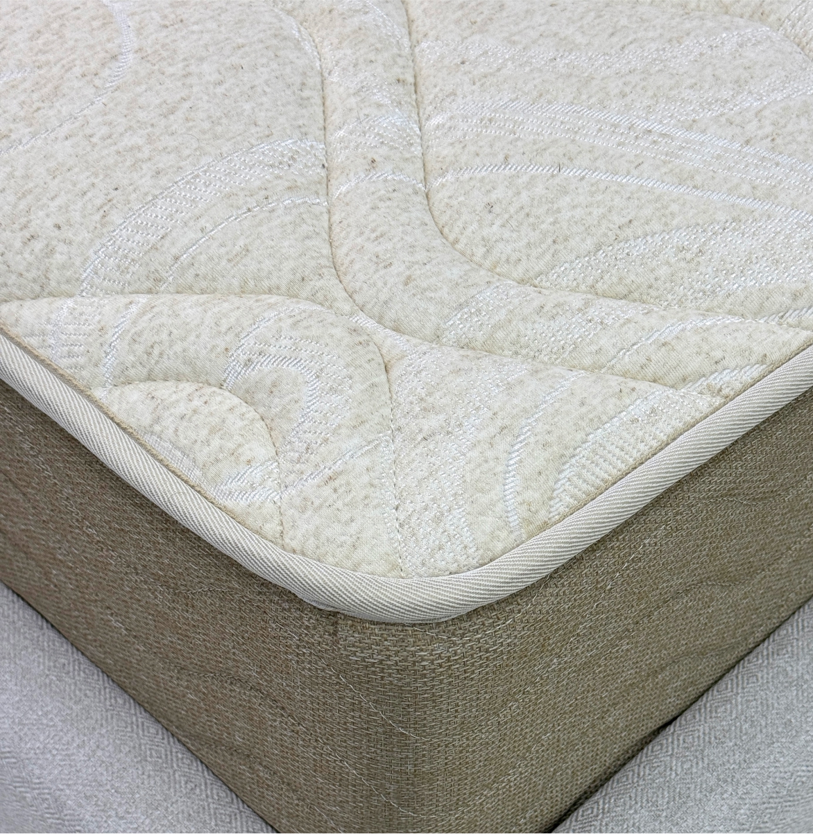 Термовойлок - Нетканый материал, состоящий из 45% льна, 45% джута и 10% синтетических волокон, получаемый путем спекания по специальной технологии. Материал высокой плотности. Используется для защиты мягких настилов матраса от воздействия пружинного блока, равномерно распределяет нагрузку по всему матрасу, придает дополнительную жесткость, упругость и долговечность.