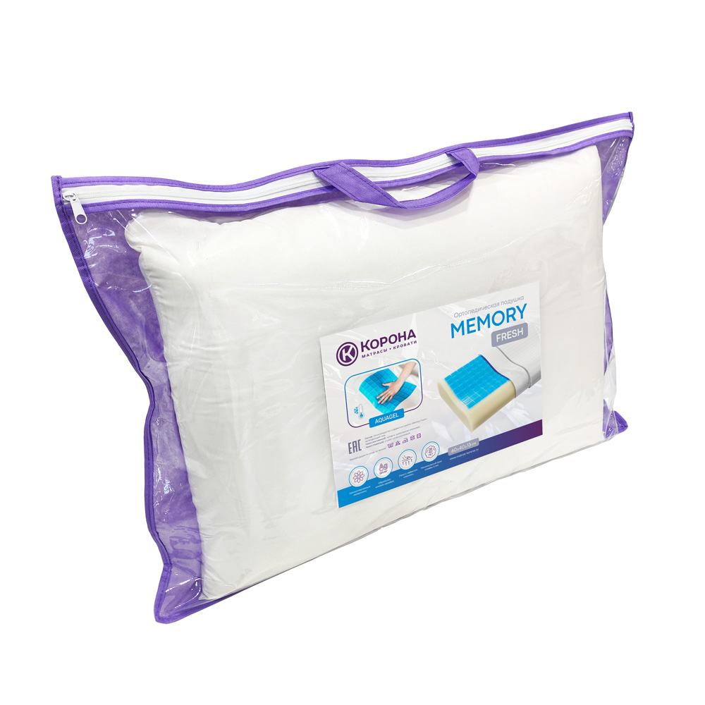 Подушка ортопедической формы с охлаждающим гелем «Aquagel». Особый состав геля сохраняет изначальную температуру и не нагревается в первые несколько минут использования подушки. Приятная прохлада способствует расслаблению и переход в быструю фазу сна будет комфортным и более эффективным. Чехол всех моделей подушек выполнен из хлопкового страйп-сатина. Эта натуральная ткань, используемая для качественного постельного белья, прекрасно дышит, и обеспечивает отличный воздухообмен.- Состав: формованная анатомическая пена с эффектом памяти «Memorix» с охлаждающим гелем «Aquagel»