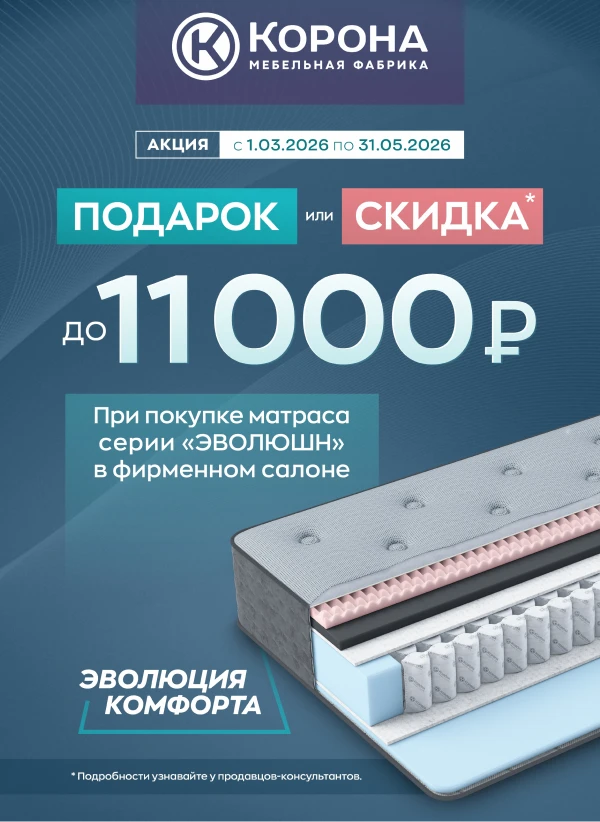 Решите сразу две задачи — приобретите матрас и выгодно купите следующий товар из ассортимента «Корона».